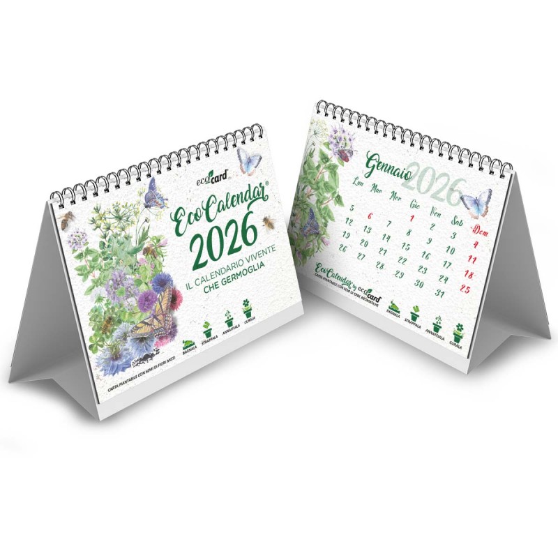 Realizzato in carta piantabile Eco-Card® con semi di piante aromatiche (basilico, timo, erba cipollina e altre varietà) e di fiori melliferi per le api, ti accompagna mese dopo mese con un messaggio di vita e sostenibilità.