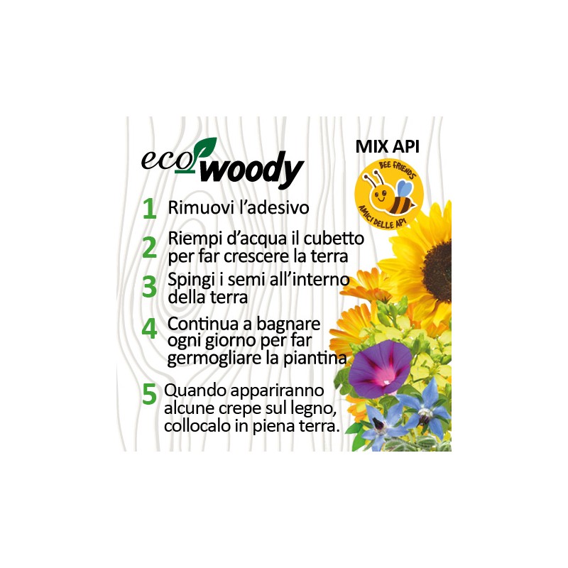 Eco-Woody è il cubo con semi in legno magnetico per la coltivazione facile in casa di piante amiche delle api.